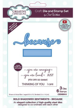 - Creative Expressions- Sue Wilson- Bold Shadowed Sentiments- Because Dies and Stamp Set
