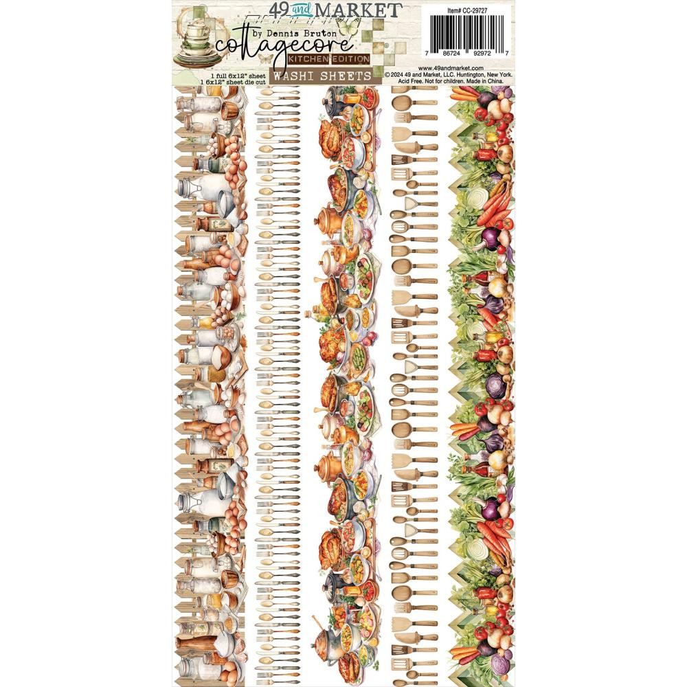 The Washi Sheets for the Cottagecore collection includes two sheets of 6 x 12" washi tape. One sheet has5 border strips that have been die cut for easy removal. One pattern on a full 6 x 12" sheet. So many options and just the right amount of washi!
