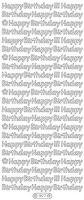 Quick view Starform | sku: 395 S Starform N395 SILVER HAPPY BIRTHDAY! Outline Peel Sticker Deco Sticker Happy Birthday -- 20 fun Happy Birthday sayings in METALLIC SILVER. One 9x4in sheet. MSRP: Now: $2.49 Add to Cart Compare 1 2 Next 1 2 Next Compare Selected