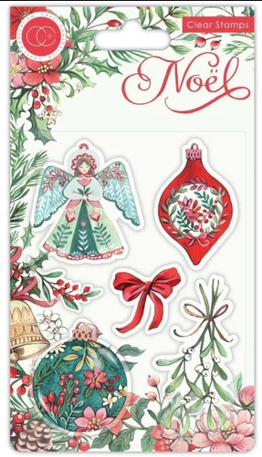 A set of 6 clear stamps in coordinating designs. With protective acetate film printed with references.