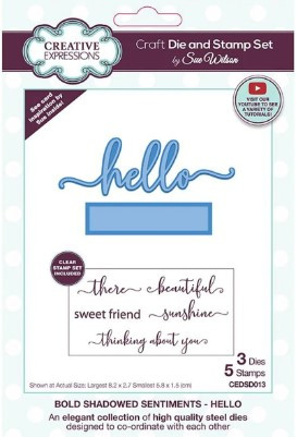 Creative Expressions Craft Dies and Stamp Set by Sue Wilson- Bold Shadowed Sentiments- Hello