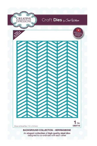 Background Collection - Herringbone. Creative Expressions Craft Dies by Sue Wilson form an elegant collection of high quality steel dies designed to co-ordinate with each other. Includes 1 die. Size: 4.6 x 5.8 in