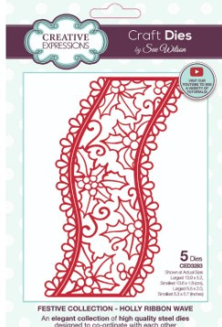 Creative Expressions Sue Wilson Festive Holly Ribbon Wave Craft Die
