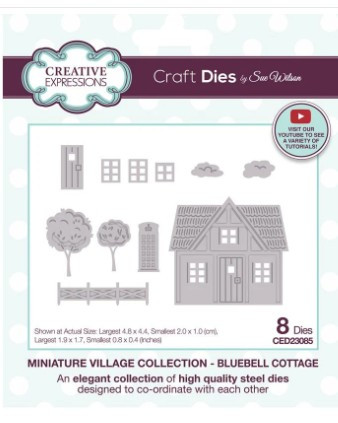 This gorgeous Bluebell Cottage Craft Die is part of Sue's Miniature Village Collection. Use alongside the other dies and stamps in the collection to create your own miniature village. The high quality steel dies are compatible with most leading die cutting machines. Made In China. 8 dies. Size 4.8 cm x 4.4 cm (1.9 in x 1.7 in).