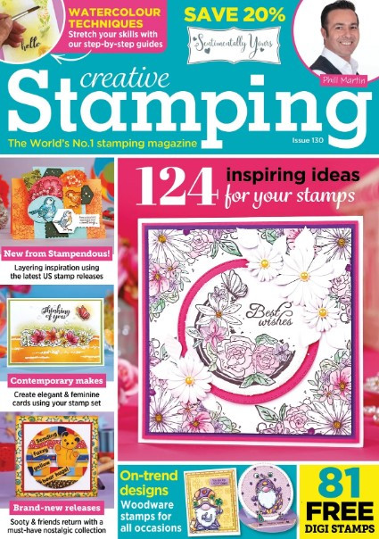 Issue 130 of Creative Stamping features Phill Martin from Sentimentally Yours, with an inspirational set of Fabulous Florals stamps plus an extra set of Splendid Sentiments, perfect for all your upcoming crafty occasions this year! Phill sends his own New Year wishes, and shares his plans for the coming year inside.Get set for some springtime makes with Sarah Jackman Read's collection of pretty cards for women. Vanessa Hodgson turns the spotlight on striped background techniques for a contemporary presentation of the stamps.
