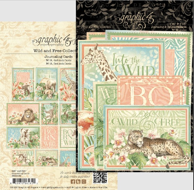 Step into the jungle with Graphic 45's latest collection Wild & Free. This line comes to life with images of your favorite wild animals...you'll love the adorable baby and mama elephants, playful monkeys, and hard-to-miss giraffes. The soft color palette comes together with alluring pink tropical flowers, a sky blue animal print, and lush green foliage.
