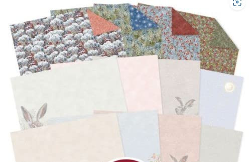 Finish off your Meadow Hares at Wintertime creations perfectly with these gorgeous inserts and striking double-sided papers. Papers feature assortments of berries, wildflowers, Christmas hollies and snowflakes and more! Inserts act beautifully as a muted background or can be used to add that finishing touch to the inside of your cards. This set includes 24 inserts in total, each featuring one of the adorable hares on a subtly coloured background with paled down artwork in the corners to match the main collection. The crisp artwork will contrast amazingly with strong colours in the rest of the collection which in turn will make your finished cards look stunning and provides the perfect place to write your own personalised message. The double-sided papers feature a matt gorgeous edge-to-edge design on the front and reverse that works perfectly with all the topper sets. The snowfall, foliage, holly berries, and frosted swirls appear throughout the papers, making lovely bold patterns and borders that can easily be matt and layered or fussy cut to create border strips, corner panels and more!