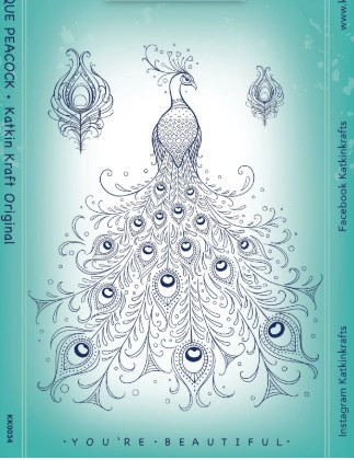 Picturesque Peacock is a gorgeous hand drawn stamp from Katkin Krafts collection featuring a majestic peacock is found in all his glory. Made from deep etched, quality photopolymer the stamps are ready to mount on an acrylic block. The stamps can be used with ink pads, paint, or used with pigment and embossing powder. They are suitable for paper, fabric, or any other surface depending on the ink choice. You can also spritz the fabric with water after stamping but before heat sealing to create lovely watercolour background washes. Store flat away from heat and sunlight. Made In UK. 4 stamp set. Size 6 in x 8 in (15 cm x 20.3cm).