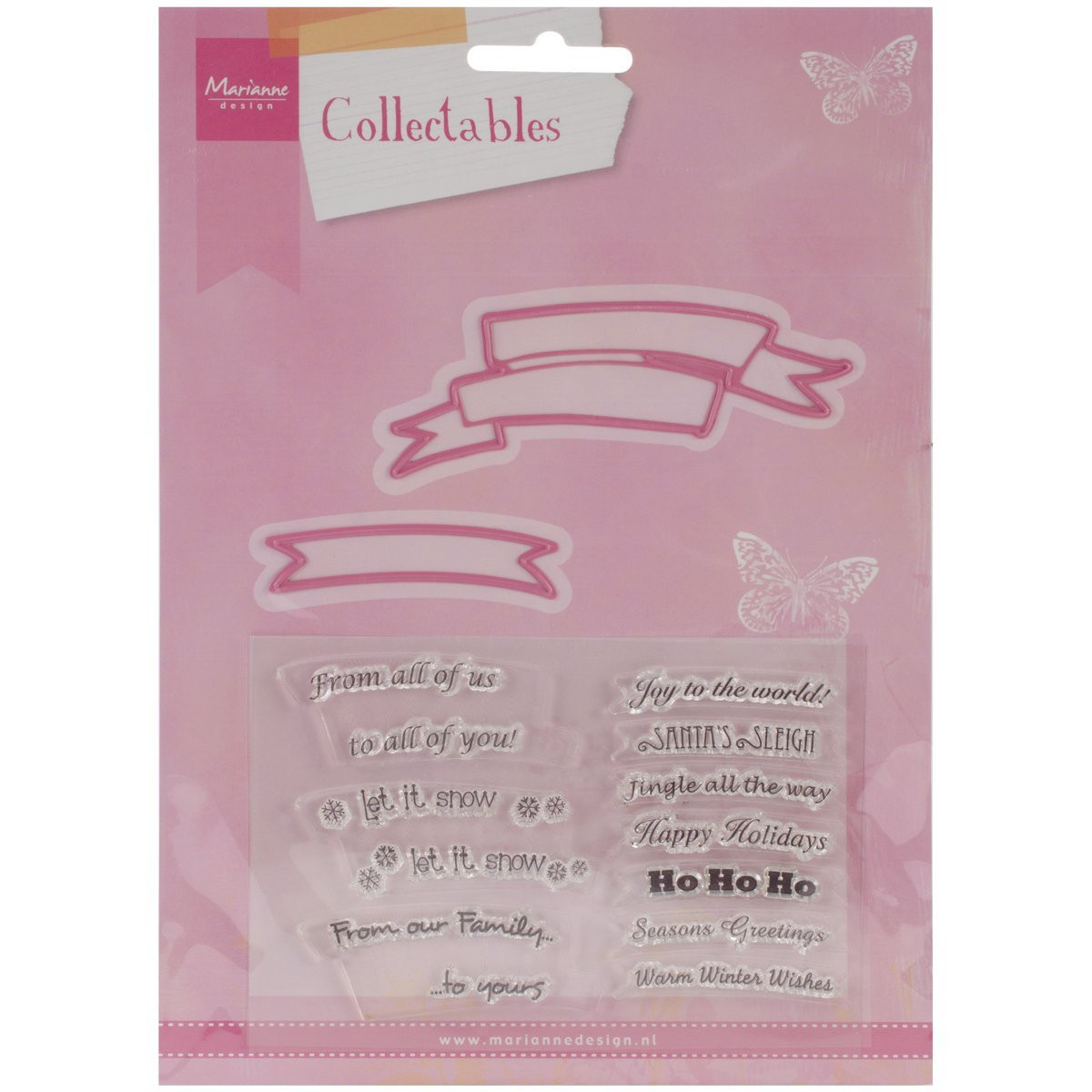 2 cutting dies and matching clear stamps. Collectables dies from Marianne Design feature cutting dies with matching clear stamps. There are instructions for using the dies with the die cutting systems. Size approx.: large die 3.75" wide. small die: 2.25" wide