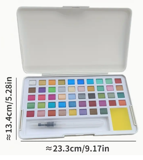 Premium 48-color Watercolor Paint set with water brush, blending tray, and sponge in a sturdy, compact carrying case.
