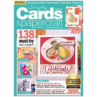 This month's 84 page issue of Simply Cards & Papercraft gives you plenty of tips, tricks, ideas and inspiration from TEXT{ures} and Waffle Flower amongst others. This magazine comes complete with an exclusive Peach Pearfection stamp set and die set, coordinating digital paper and topper downloads and A Year Of Cards Volume 2 book.FEATURES & BENEFITS