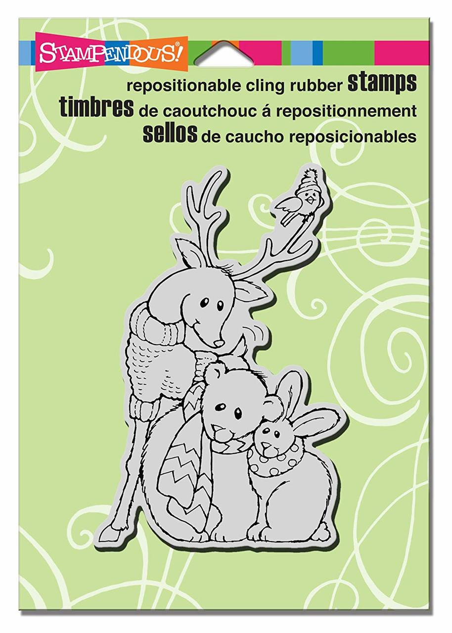 Stampendous-Cling Rubber Stamps. Premium quality precision trimmed rubber stamps that give you a beautiful image every time. Use with any acrylic block (sold separately). Simply remove the disposable acetate layer revealing the vinyl cling with printed image press onto a block align and stamp. Use any ink that can be used with traditional wood-mounted stamps and clean with wood-mounted stamp cleaner. This package contains Furry Friends: one cling rubber stamp on one 4x4-1/2 inch backing sheet. Made in USA.