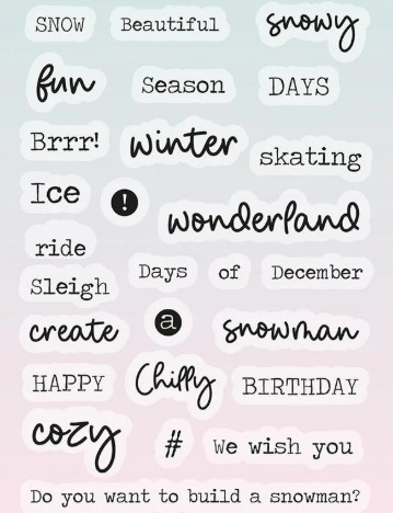 These text clear stamps are perfect for cardmaking. Includes 'Snow', 'Days', 'Sleigh', 'Ride', 'Chilly', 'Winter' and 'Brrr!'