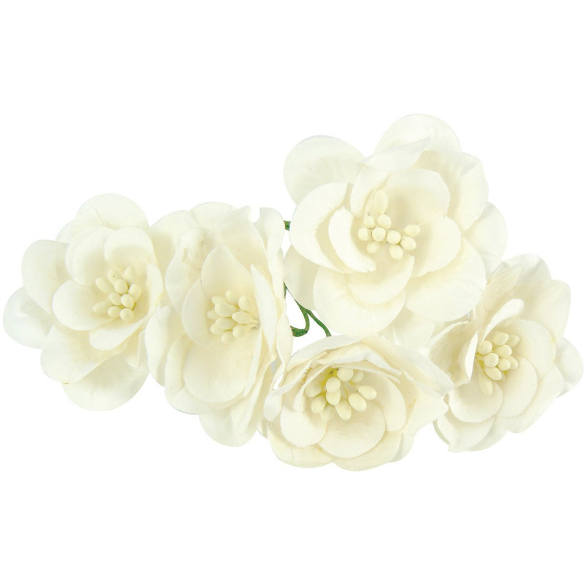 These paper Magnolias from Ultimate Crafts are charming. Flowers are made from off-white paper and have off-white stamen centers. Flowers sizes vary slightly based on the construction of the flowers. Flowers measure between 1.5 and 2-inches, Flowers are presented in an organza gift bag with a satin ribbon drawstring